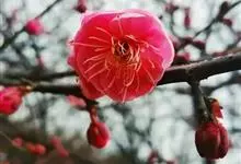 梅:蔷薇科,木本植物。形态多样,通常为小乔木,高4-10米,树皮紫红色,叶片呈弧型或椭圆形,叶边常具小锐锯齿,灰绿色。花单生或有时2朵同生于1芽内,直径2-2.5厘米,香味浓,先于叶开放;花色丰富,…全部>>