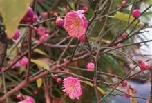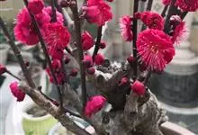 宫粉梅 Rehd.)是蔷薇科、李属植物,梅花品系中真梅系直枝梅类宫粉型,其花复瓣至重瓣,呈或深或浅的红色。落叶乔木,高达10米。树干褐紫色,有纵驳纹,小枝细而无毛,多为绿色。叶广卵形至卵形,…全部>>