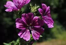 锦葵:二年生或多年生直立草本,高50-90厘米,分枝多,疏被粗毛。叶圆心形或肾形,具5-7圆齿状钝裂片,两面均无毛或仅脉上疏被短糙伏毛。花3-11朵簇生,小苞片3,长圆形疏被柔毛;花紫红色或白色,…全部>>
