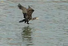 普通鸬鹚是属于鲣鸟目鸬鹚科鸬鹚属鸟类,又名水老鸦、鱼鹰、乌鬼、黑鱼郎等。体长720—900毫米,雌雄同型。通体黑色,有绿褐色金属光泽;喙厚重,喙基和喉囊橙黄色,脸颊及喉白色;夏羽颈及头饰具白色丝状羽,…全部>>
