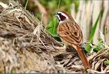 山麻雀:小型鸟类,体长13-15厘米。雄鸟上体栗红色,背中央具黑色纵纹,头棕色或淡灰白色,颏、喉黑色,其余下体灰白色或灰白色沾黄。雌鸟上体褐色具宽阔的皮黄白色眉纹,颏、喉无黑色。…全部>>