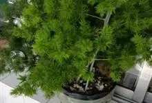 蓬莱松是天门冬科、天门冬属多年生丛生草本植物。宿存,圆柱形肉质根,纵截面为绿色和表面灰色。植株高可达3米。茎呈圆柱形或近四边形,底部木质化,具有灰色或灰褐色。幼嫩的茎在每个节上都被紫绿色鳞片包,…全部>>