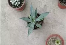 龙舌兰属是石蒜科下的一属。多年生植物。无茎或有极短的茎。叶呈莲座式排列,大而肥厚,肉质或稍带木质,边缘常有刺或偶而无刺,顶端常有硬尖刺。花茎粗壮高大,…全部>>
