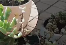 棒叶落地生根是景天科、落地生根属植物。茎直立、粉褐色。叶圆棒形,上表面有沟、粉色,有红褐斑。叶片交互对生,交叉排列成十字形。叶端锯齿上长有很小的幼株、落地后即可生根成活。原产非洲马达加斯加。…全部>>