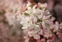 湖北海棠 Rehder)是蔷薇科苹果属植物,乔木,高达8米;小枝最初有短柔毛,不久脱落,老枝紫色至紫褐色;冬芽卵形,先端急尖,鳞片边缘有疏生短柔毛,暗紫色。果实椭圆形或近球形,直径约1厘米,…全部>>