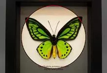 荧光裳凤蝶是凤蝶科裳凤蝶属的一种大型蝴蝶,该物种共有3个亚种。该蝶飞翔的时候姿态优美,前翅黑色,后翅金黄色和黑色交融的斑纹在阳光照射下金光灿灿,显得华贵美丽。幼虫寄主为多种马兜铃属的植物,取食马兜铃…全部>>