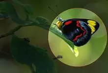 报喜斑粉蝶是粉蝶科斑粉蝶属的一种动物,又名红肩粉蝶、藤粉蝶等。幼虫群集性很强,从同一卵块孵化出的幼虫,幼龄期全部群集在一起取食,高龄幼虫常分散成小群。幼虫群集危害叶片,造成秃枝,严重者可将树吃成光杆,…全部>>