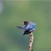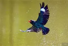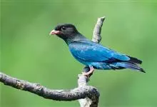 三宝鸟,是佛法僧目佛法僧科三宝鸟属中小型攀禽。成鸟通体为富有光泽的墨蓝绿色,头大而头顶扁平;头部色深近紫黑色,上体至尾泛有铜绿光泽;两翼有幽蓝金属光,初级飞羽黑褐色;羽基淡石青色,形成大块淡蓝,…全部>>