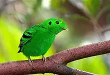 三宝鸟佛法僧科三宝鸟属的鸟类,为佛法僧目三宝鸟属下的一种中小型攀禽,共有10个亚种,体长26-29厘米,体重107-194克。通体蓝绿色,头和翅较暗,呈黑褐色,初级飞羽基部具淡蓝色斑,飞翔时甚明显。…全部>>
