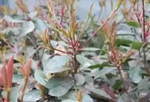红叶石楠 是蔷薇科,石楠属杂交种,为常绿小乔木或灌木,乔木高可达5米、灌木高可达2米。叶片革质,长圆形至倒卵状、披针形,叶端渐尖,叶基楔形,叶缘有带腺的锯齿,花多而密,复伞房花序,花白色,梨果黄红色,…全部>>