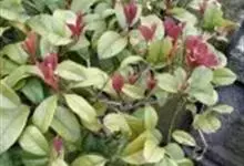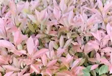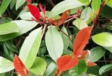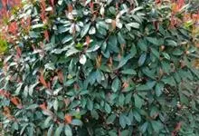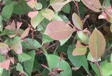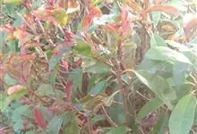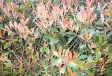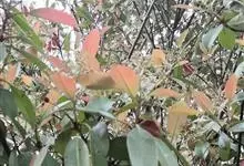 红叶石楠 是蔷薇科,石楠属杂交种,为常绿小乔木或灌木,乔木高可达5米、灌木高可达2米。叶片革质,长圆形至倒卵状、披针形,叶端渐尖,叶基楔形,叶缘有带腺的锯齿,花多而密,复伞房花序,花白色,梨果黄红色,…全部>>