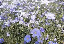宿根亚麻是一种多年生宿根花卉,可作一年生栽培。株高40~50cm,基部多分枝,茎丛生、直立而细长。叶互生,披针形,浅蓝绿色。聚伞花序顶生或生于上部叶腋,花梗纤细,花瓣5枚,淡蓝色。产于中国北部、西南…全部>>