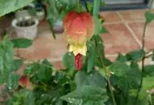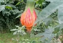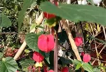 红萼苘麻是锦葵科、苘麻属常绿软木质灌木,叶绿色,长5-10厘米,心形,叶端尖,叶缘有钝锯齿,有时分裂,有细细的叶柄;叶互生,掌状叶脉;花单生于叶腋,具长梗,下垂;花萼红色,半套着大约4厘米长的花瓣,…全部>>