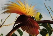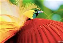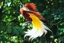 大极乐鸟是极乐鸟属中最大的鸟种。成年雄鸟体长可达到43厘米,雌性可达35厘米。雄鸟的额、颊、喉等墨绿色;头、颈黄色;上体暗赤栗色;腹部葡萄红色,胁部有长饰羽,其基部橙黄,中部黄色,…全部>>