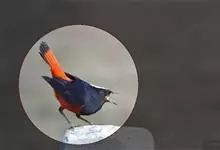 红头咬鹃: 体大,体长约33厘米,体重75-110克。头、颈暗绯红色;背、肩锈褐色。两翅黑色,翅上覆羽和内侧飞羽密被白色细虫蠹斑纹,初级飞羽黑色,外侧具白色羽缘;腰和尾上覆羽较多锈色。中央尾羽深栗色,…全部>>