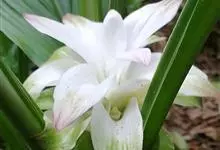 姜黄是姜科姜黄属植物,根茎发达、成丛,分枝多,呈椭圆形或圆柱形;叶为长圆形或椭圆形;花葶由顶部叶鞘内抽出;穗状花序呈圆柱形;苞片是卵形或长圆形,颜色为淡绿色;花冠呈淡黄色,姜黄花期为8月。…全部>>