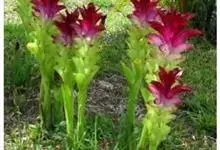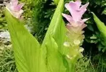 莪术姜科姜黄属多年生草本植物。主根茎陀螺状,淡黄色至白色;叶圆状长圆形至长圆状披针形,中部常有紫斑;花亭自根茎先叶发出,穗状花序阔圆形;苞片卵形,下部绿白色至绿色,上部紫红色;花冠白色或粉红色,…全部>>