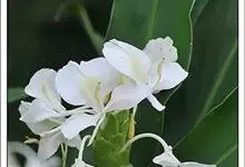姜花又名野姜花。是姜科姜花属的多年生草本植物,茎高1-2米;叶片长圆状披针形或披针形,叶面光滑,叶背被短柔毛;穗状花序顶生,椭圆形,花芬芳,白色;蒴果卵状三棱形,微黄绿色;种子鲜红色,具橘红色的假种皮。…全部>>