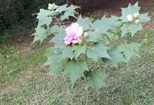 木芙蓉,锦葵科木槿属落叶灌木或小乔木。小枝上有细绒毛;叶片为卵状心形,托叶为披针形,常早落;花单生,花萼为钟形,花冠初为白色或淡红色,后逐渐变为深红色;果实为扁球形,有淡黄色的毛附着。花期8到10月。…全部>>