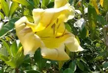 金杯藤 P.S. Green)是茄科、金杯藤属多年生常绿大型藤本。茎及枝条粗壮。叶片互生。长椭圆形。先端突尖。叶面有光泽。全株具有毒乳汁。花顶生,单朵或数朵,花苞棒槌状。从绿色转变为淡黄色。…全部>>