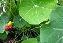 旱金莲是旱金莲科旱金莲属蔓生一年生草本植物。叶互生,叶柄向上扭曲,盾状,叶圆形,具波状浅缺刻,下面疏被毛或有乳点;花黄、紫、桔红或杂色,花托杯状,花瓣为圆形,边缘具缺刻;果实为扁球形;花果期6-10月,…全部>>