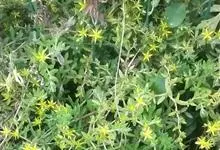 垂盆草别名石头菜、狗牙瓣、豆瓣菜等,为景天科景天属的多年生草本植物。不育枝及花茎细,匍匐而节上生根,直到花序之下;3叶轮生,叶倒披针形至长圆形,先端近急尖,基部急狭,有距;聚伞花序,花无梗,…全部>>