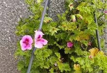 蔓性天竺葵学名盾叶天竺葵 Ait.)是牻牛儿苗科天竺葵属植物。多年生攀缘或缠绕草本,长40-100厘米,茎具棱角,多分枝,叶互生,略呈肉质,伞房花序腋生,有花数朵,花冠洋红色,上面2瓣着深色条纹,…全部>>