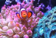 小丑鱼是鲈形目雀鲷科小丑鱼属鱼类的统称。体长仅5—6厘米。身体色彩艳丽,多为红色、橘红色;除透明的胸鳍与软背鳍鳍条外部,其余鳍均为黑色。体形怪异,体色多变,通常体侧有白色条纹。…全部>>