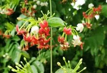 使君子 Jongkind)是使君子科、使君子属攀援灌木,叶对生,椭圆形,两面均被灰白色柔毛。穗状花序,倒挂下垂。花期夏秋。果有五棱,熟时黑色,种子白色。分布于印度、缅甸、菲律宾和中国。喜温润,深根性,…全部>>