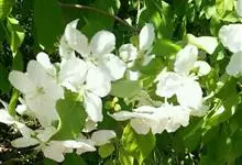 山荆子 Borkh.):为落叶乔木,树高可达4-5米,最高可达10米以上。灰褐色,光滑,不易开裂。新梢黄褐色,无毛。嫩梢绿色微带红褐。叶片椭圆形,先端渐尖,基部楔形,叶缘锯齿细锐。伞形总状花序。花白色,…全部>>