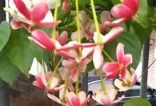使君子 Jongkind)是使君子科、使君子属攀援灌木,叶对生,椭圆形,两面均被灰白色柔毛。穗状花序,倒挂下垂。花期夏秋。果有五棱,熟时黑色,种子白色。分布于印度、缅甸、菲律宾和中国。喜温润,深根性,…全部>>