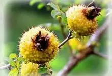 金樱子为常绿攀援灌木,高可达5米。小枝粗壮,散生扁弯皮刺,无毛,幼时被腺毛,老时逐渐脱落减少。小叶革质;小叶片边缘有锐锯齿;小叶柄和叶轴有皮刺和腺毛;托叶离生或基部与叶柄合生,边缘有细齿,齿尖有腺体。…全部>>