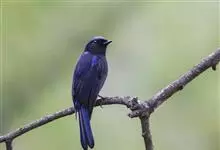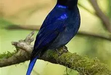 大仙鹟:体重34-38克,体长20-2厘米。是一种体型较大的深色鹟。雄鸟上体蓝色,头顶、颈侧条纹、肩块及腰部辉蓝,下体黑色。雌鸟橄榄褐色,头顶蓝灰,颈侧具闪辉浅蓝色块,喉具皮黄色三角形块斑。…全部>>