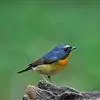 棕胸蓝姬鹟:属小型鸣禽,体长10-13厘米,体重6-10克,是一种体型很小的灰蓝及棕色鹟,雌雄羽色不同,雄鸟羽色艳丽,雌鸟羽色暗淡。雄鸟上体深蓝色,胸橙黄色,下腹灰白色。亚成鸟具褐色斑驳。…全部>>