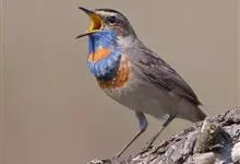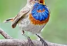 蓝点颏亦称“蓝喉歌鸲”,通称蓝靛颏儿。身体大小和麻雀相似,体长12-13厘米,体重17-18克。头部、上体主要为土褐色。眉纹白色。尾羽黑褐色,基部栗红色。颏部、喉部辉蓝色,下面有黑色横纹。下体白色。…全部>>