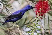 蓝大翅鸲是鹟科、大翅鸲属小型鸟类,体长19-21厘米。两翅尖长。雄鸟通体鲜紫蓝色具金属光泽。两翅和尾黑色。雌鸟上体灰褐色,头、颈、翕具棕白色纵纹,翅上有白色翅斑。虹膜暗褐色,嘴、脚黑色。…全部>>