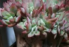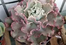女王花笠,又名扇贝石莲花、女王花舞笠,是景天科拟石莲花属的多肉植物。由美国加利福尼亚州的育种师Dick Wright于1964年培育。特征是呈大波浪状褶皱的红色叶缘和气质高贵的粉紫色调。…全部>>