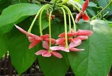 使君子 Jongkind)是使君子科、使君子属攀援灌木,叶对生,椭圆形,两面均被灰白色柔毛。穗状花序,倒挂下垂。花期夏秋。果有五棱,熟时黑色,种子白色。分布于印度、缅甸、菲律宾和中国。喜温润,深根性,…全部>>