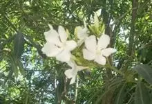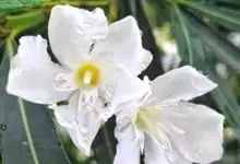 白花夹竹桃是夹竹桃科、夹竹桃属植物夹竹桃的栽培品种。常绿直立大灌木,枝条灰绿色;嫩枝条具稜,被微毛,老时毛脱落。叶3-4枚轮生,下枝为对生,叶面深绿,叶背浅绿色;侧脉纤细平行与中脉成直角;叶柄扁平,…全部>>