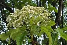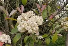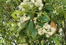石楠 Kalkman),是蔷薇科石楠属的常绿乔木,高5~12米,株型紧凑,树冠圆球形。树枝为褐灰色;鳞片为褐色,没有毛;叶片革质,长椭圆至侧卵状椭圆形,有锯齿,新叶红色光亮。复伞房花序,白色小花,…全部>>