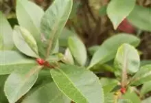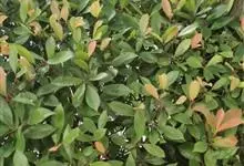 红叶石楠 是蔷薇科,石楠属杂交种,为常绿小乔木或灌木,乔木高可达5米、灌木高可达2米。叶片革质,长圆形至倒卵状、披针形,叶端渐尖,叶基楔形,叶缘有带腺的锯齿,花多而密,复伞房花序,花白色,梨果黄红色,…全部>>