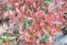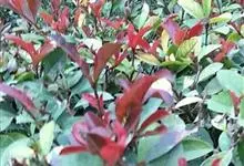 红叶石楠 是蔷薇科,石楠属杂交种,为常绿小乔木或灌木,乔木高可达5米、灌木高可达2米。叶片革质,长圆形至倒卵状、披针形,叶端渐尖,叶基楔形,叶缘有带腺的锯齿,花多而密,复伞房花序,花白色,梨果黄红色,…全部>>