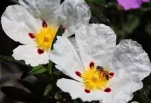 岩蔷薇是半日花科岩蔷薇属植物,多年生直立亚灌木,高约1.5-2.5米,全体具胶黏腺体。枝条褐色,侧枝分为生长枝和结果枝。单叶对生,披针形至线状披针形,长5-8厘米,宽0.5-1.5厘米。…全部>>