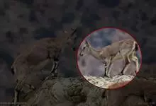 岩羊是偶蹄目牛科岩羊属哺乳动物。颜色与岩石相像,两性皆具角,雄羊角大而弯曲,角外表具不明显的横棱且体壮实,雌羊角短小;头较小,眼大,耳小,颏下无须;体背面为棕灰或石板灰色略有蓝色反光,…全部>>