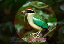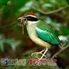 绿胸八色鸫:是雀形目八色鸫科的鸟类,共有12个亚种。体长为16-18厘米,体重65-69克。体型圆胖,尾短,腿长。头黑,上体绿色,两翼深色而具白色斑纹,头顶至后枕深褐,胸及腹部苹果绿,臀亮红。…全部>>