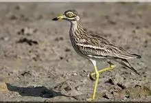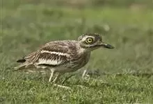 石鸻,是石鸻科、石鸻属的中型涉禽,体长40-45厘米。嘴粗厚、尖端黑色,基部黄色。脚长而粗、黄色,3趾,后趾缺失。上体淡沙灰褐色具黑褐色纵纹,前额和眼先白色。眼特别大、黄色,其外有一窄的黑圈,…全部>>
