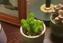 小松绿是景天科景天属植物,多肉植物,植株低矮,多分枝,株型近似球状,新枝浅绿色,以后逐渐转为灰白色,肉质叶近似针状。枝条下部的老叶容易干枯,贴在枝干上,形成类似松树皮般的龟裂,数月才脱落,…全部>>