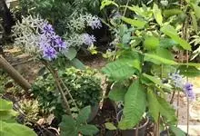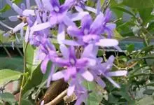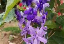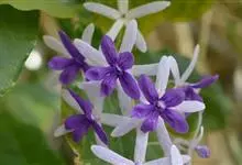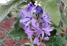 蓝花藤是马鞭草科、蓝花藤属木质藤本,长达5米,叶对生,革质,触之粗糙,椭圆状长圆形或卵状椭圆形,总状花序顶生,下垂,花蓝紫色,花期4-5月。 蓝花藤原产古巴,…全部>>