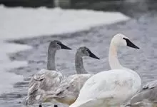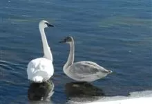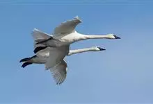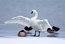 小天鹅为大型水禽,体长110~130厘米,体重4~7千克,雌鸟略小。它与大天鹅在体形上非常相似,同样是长长的脖颈,纯白的羽毛,黑色的脚和蹼,身体也只是稍稍小一些,颈部和嘴比大天鹅略短,但很难分辩。最…全部>>