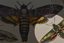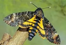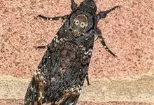 鬼脸天蛾,是鳞翅目天蛾科面形天蛾属动物。成虫翅展100~125毫米,体黑褐色;胸背有骷髅形斑纹;卵圆球形,直径约2毫米,淡黄绿色,表面光滑;老熟幼虫体长70~90毫米,蛹体长约56毫米;前翅为褐色,…全部>>